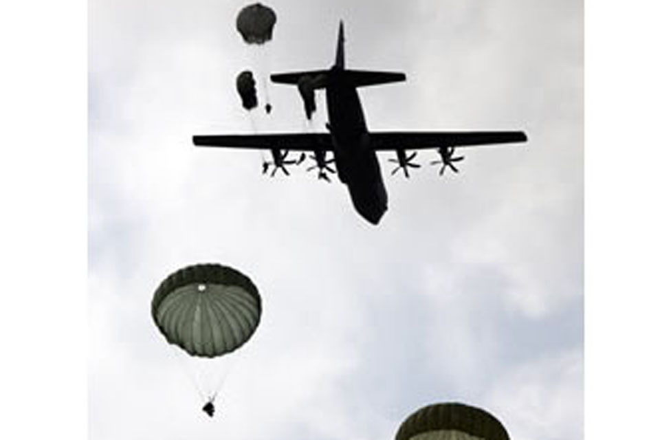 Flying on an American C-130 aircraft, 75 soldiers from 2 PARA launched themselves onto the drop zone in a covert manner.