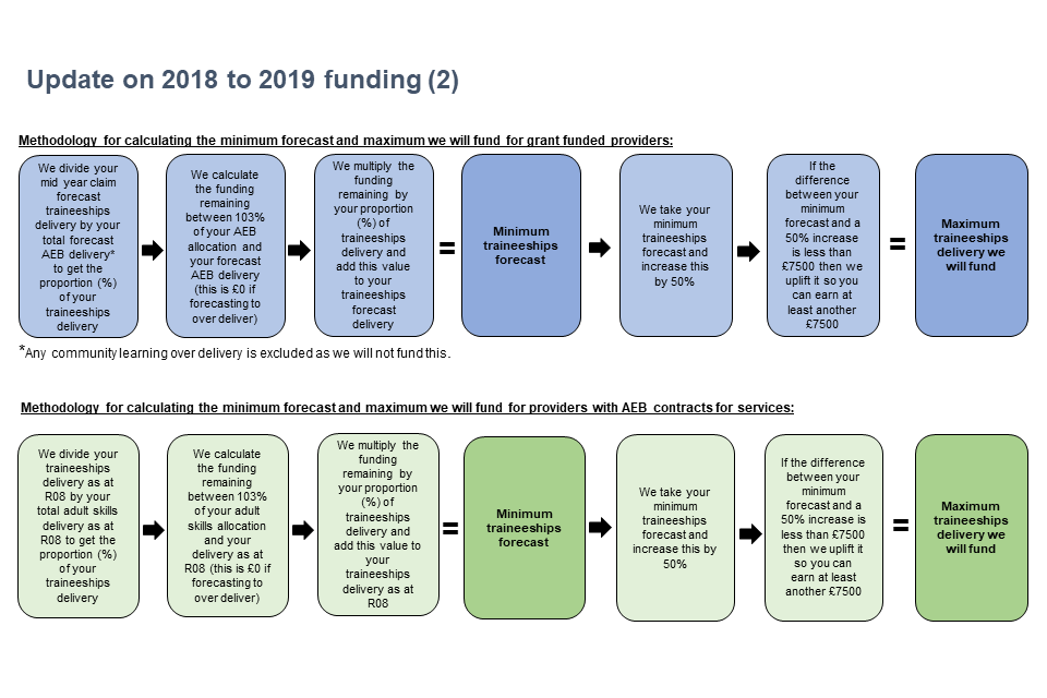 News on the 2018 to 2019 adult education budget and 19-24 traineeships funding over delivery