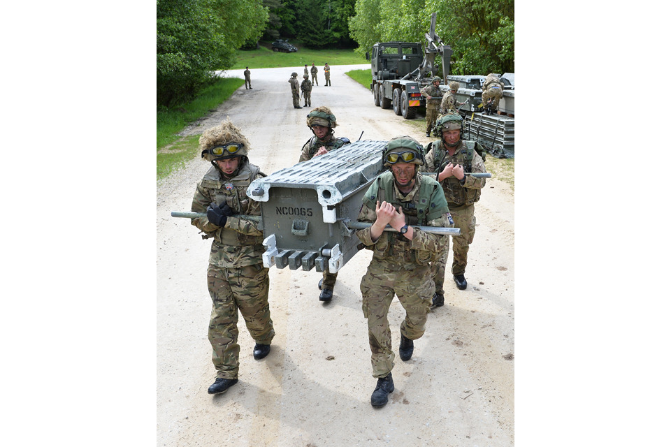 Soldiers from 37 Armoured Engineer Squadron build a 5-bay medium girder bridge for armoured vehicles to use [Picture: Corporal Wes Calder RLC, Crown copyright]