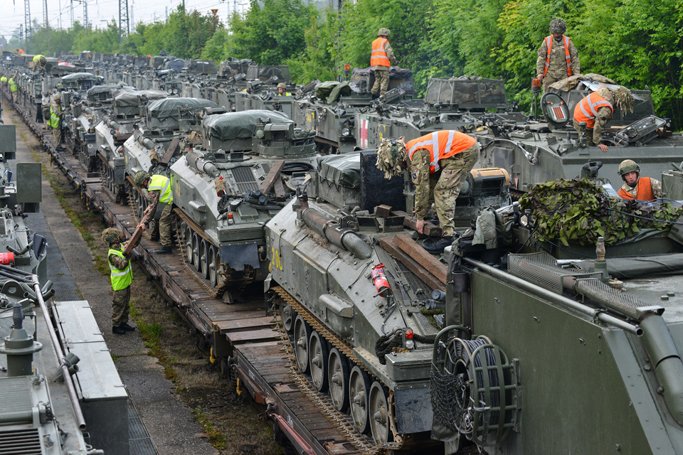 Armoured vehicles arrive in Hohenfels from Grafenwöhr by cargo train [Picture: Corporal Wes Calder RLC, Crown copyright]