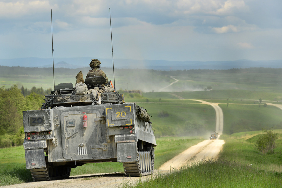 A British Warrior infantry fighting vehicle patrolling across the live firing range in Grafenwöhr [Picture: Corporal Wes Calder RLC, Crown copyright]