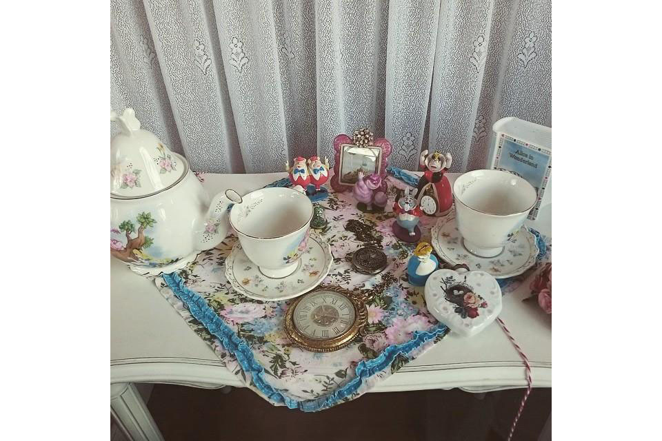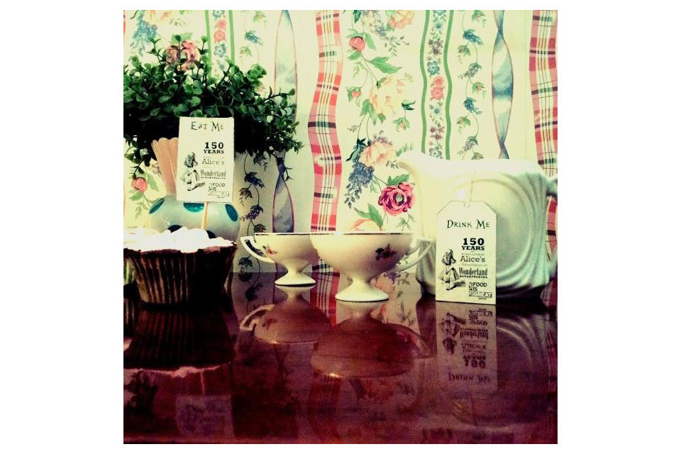 *1º colocado: 1 prato de doces de dois andares, 1 ecobag e 1 toalha de mesa da Mrs Moore’s Vintage Store, inspirado em Alice no País das Maravilhas e com ilustrações de John Teniel