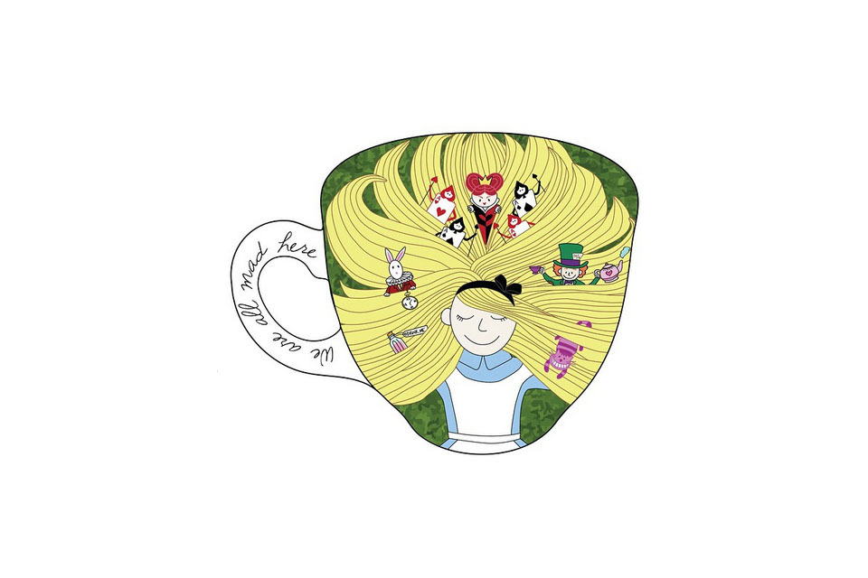 *2º colocado: 1 xícara, 1 ecobag e 1 toalha de mesa da Mrs Moore’s Vintage Store, inspirado em Alice no País das Maravilhas e com ilustrações de John Teniel