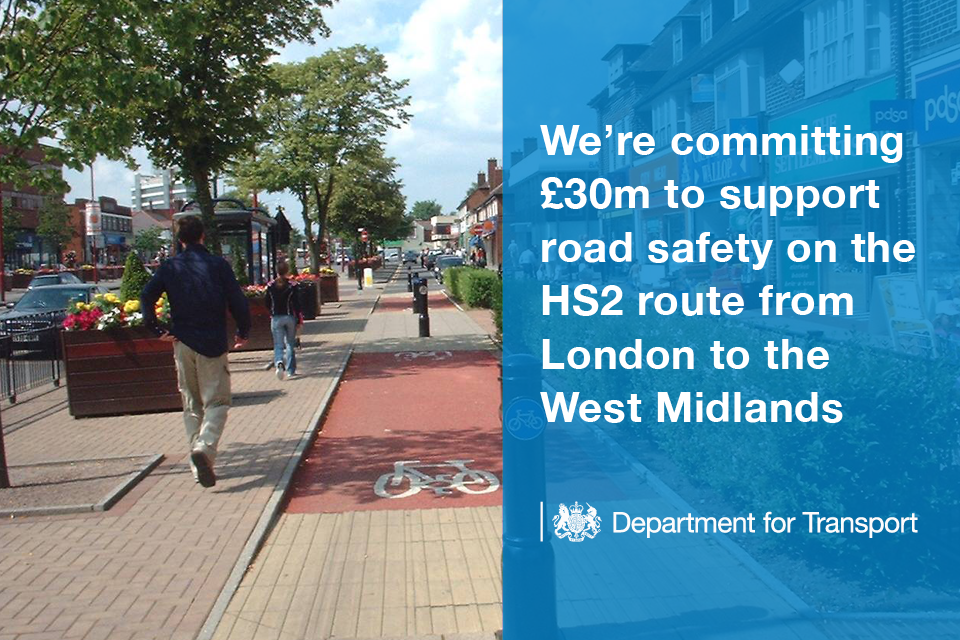 government today (November 24 2017) confirms allocation of £30 million to improve road and cycle safety in towns and villages along the HS2 route between London and the West Midlands