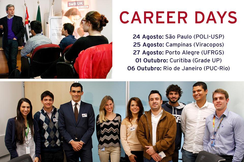 - Career Days: eventos organizados em universidades e instituições parceiras a fim de discutir os impactos profissionais de uma experiência de intercâmbio no Reino Unido. Ótima oportunidade de networking e de discussão sobre outros programas de estudo e carreira na terra da Rainha.