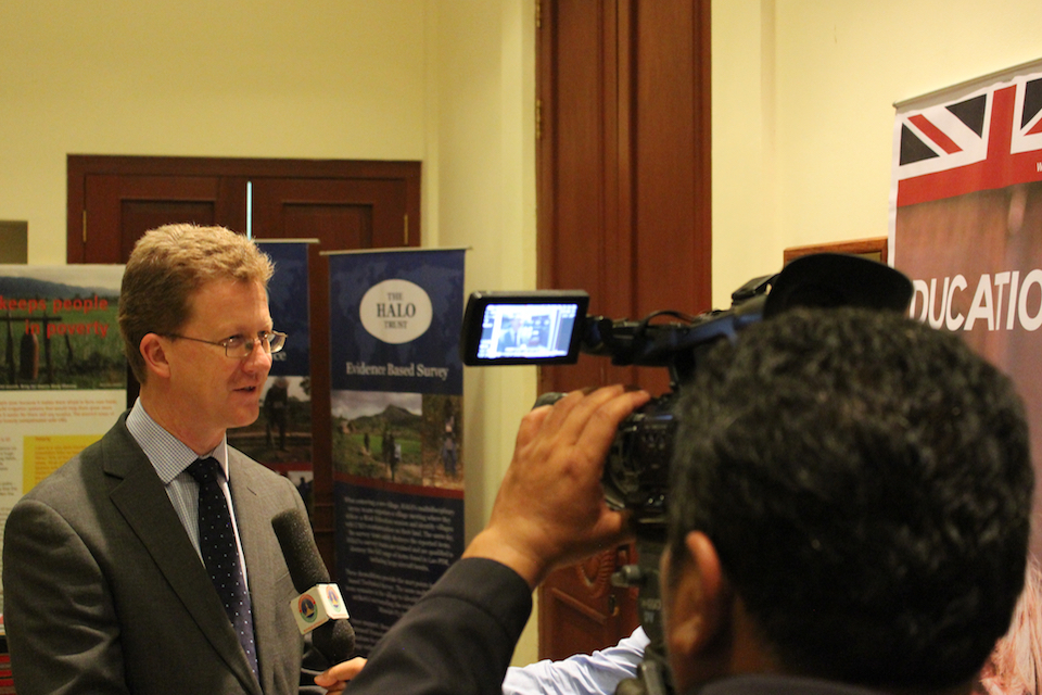 FCO Director Asia-Pacific Stephen Lillie giving a press statement to Lao Television
