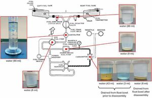 Water recovered from the aircraft’s fuel system (fuel system diagram courtesy of Commander Aircraft Corp)