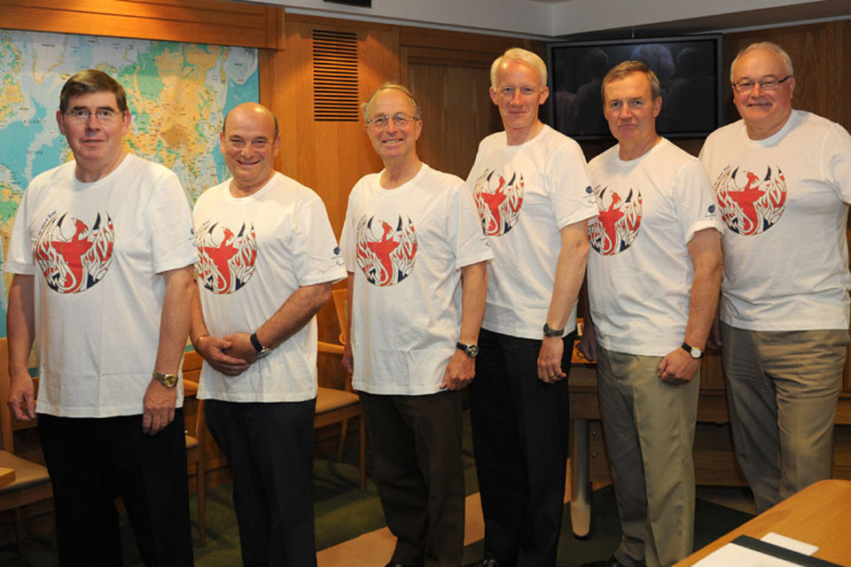 Defence Chiefs sport Adidas Phoenix t-shirts. Left to right: First Sea Lord Admiral Sir Mark Stanhope, Commander Joint Forces Command Air Chief Marshal Sir Stuart Peach, Chief of the Defence Staff General Sir David Richards, Chief of the Air Staff Air Chief Marshal Sir Stephen Dalton, Vice Chief of the Defence Staff General Sir Nicholas Houghton, and Chief of the General Staff General Sir Peter Wall [Picture: Sergeant Jez Doak RAF, Crown Copyright/MOD 2012]