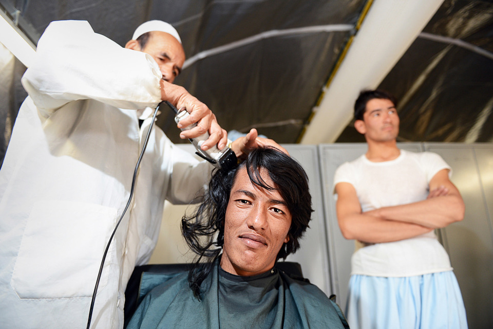 An officer cadet has his hair cut on day one of his training at the Afghan National Army Officer Academy [Picture: Sergeant Dan Bardsley, Crown copyright]