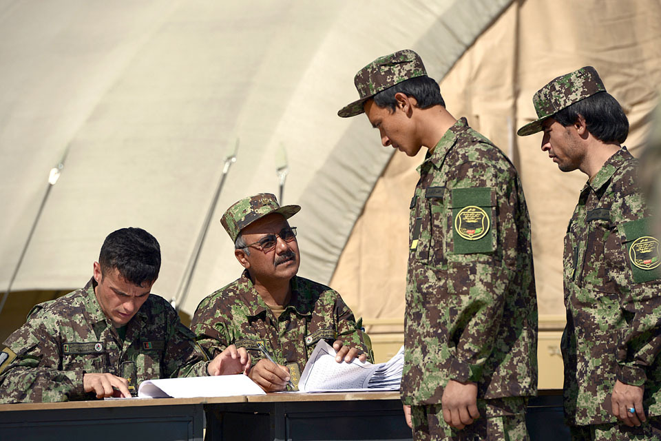 An officer cadet has his details checked during enrolment at the Afghan National Army Officer Academy [Picture: Sergeant Dan Bardsley, Crown copyright]