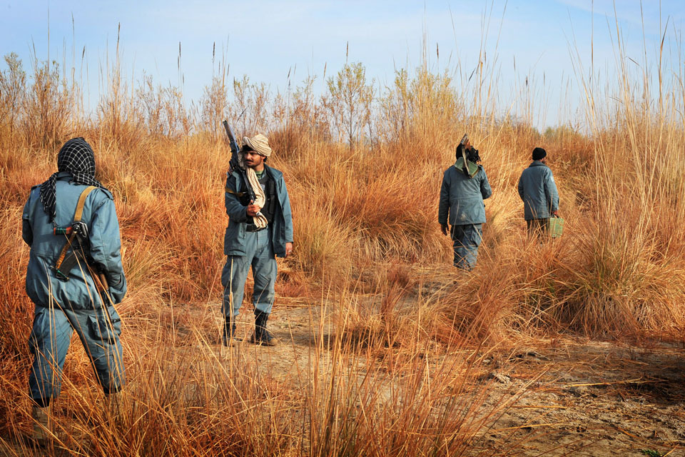 Members of the Afghan Uniform Police on patrol [Picture: Corporal Mike O'Neill RLC, Crown Copyright/MOD 2012]