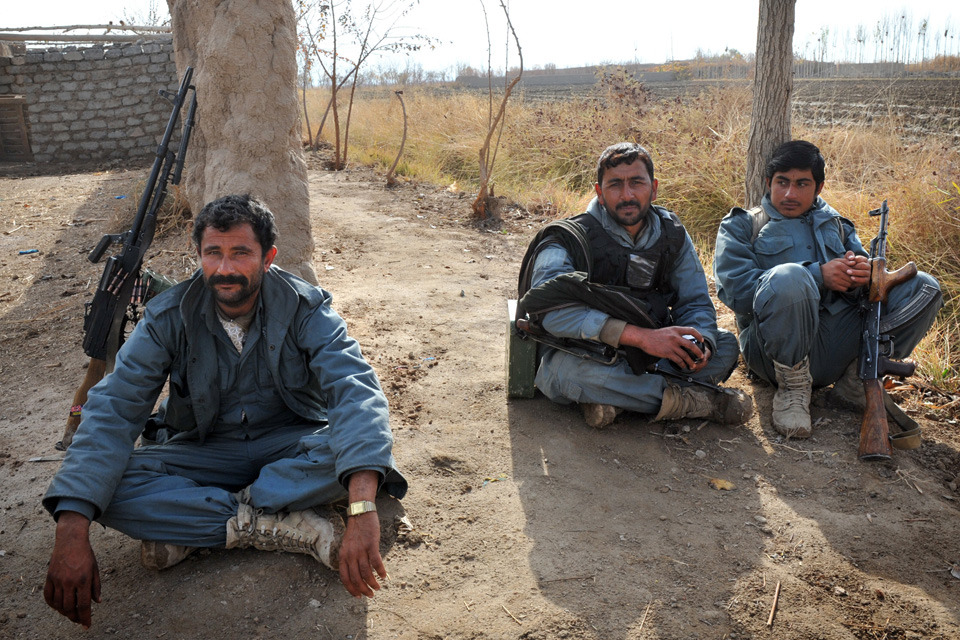 Members of the Afghan Uniform Police take a break [Picture: Corporal Mike O'Neill RLC, Crown Copyright/MOD 2012]