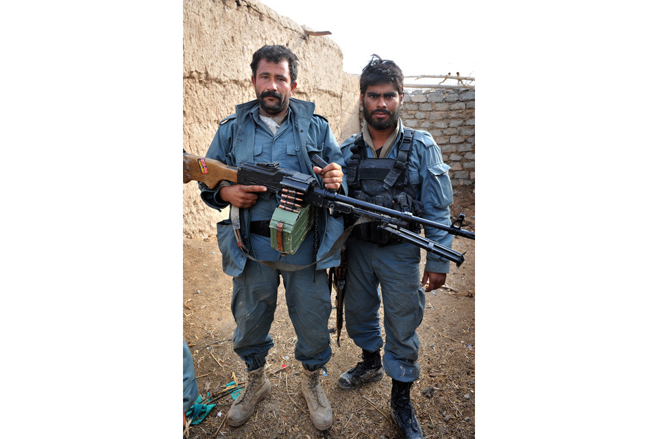 Afghan Uniform Police Officers Abdul and Torjan [Picture: Corporal Mike O'Neill RLC, Crown Copyright/MOD 2012]