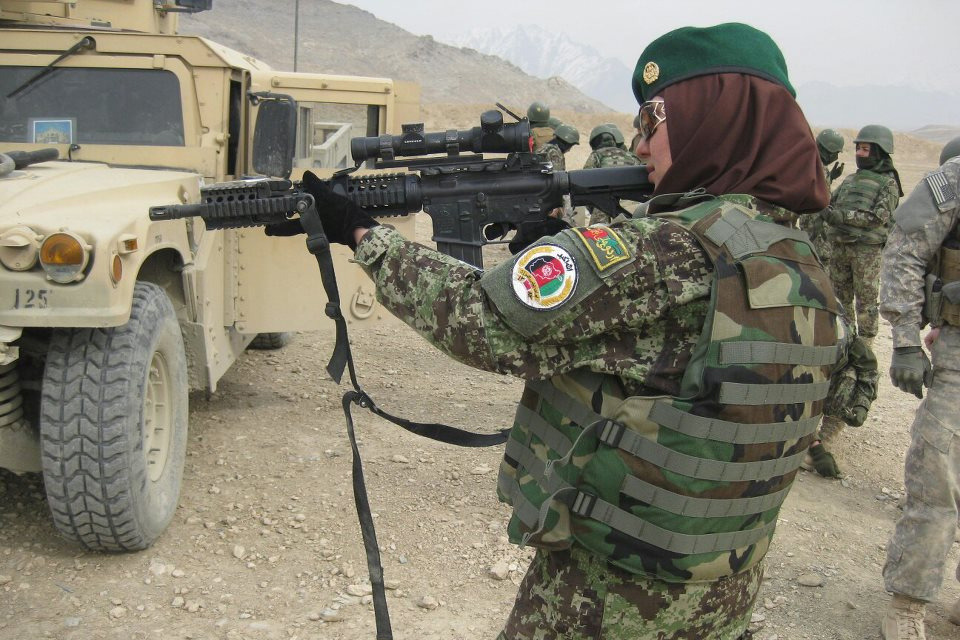 A female Afghan National Army officer looks through the sights of her rifle (library image) [Picture: ISAF]
