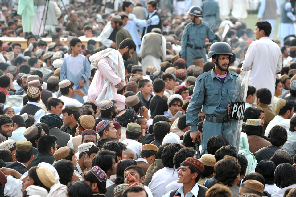 Afghan policemen carry out security duties at a major public event in Lashkar Gah (library image) [Picture: Sergeant Rupert Frere, Crown copyright]