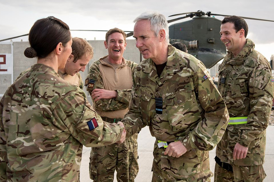 Chief of the Air Staff, Air Chief Marshal Sir Andrew Pulford, meeting soldiers and airmen at Camp Bastion in Afghanistan [Picture: Corporal Ross Fernie RLC, Crown copyright]