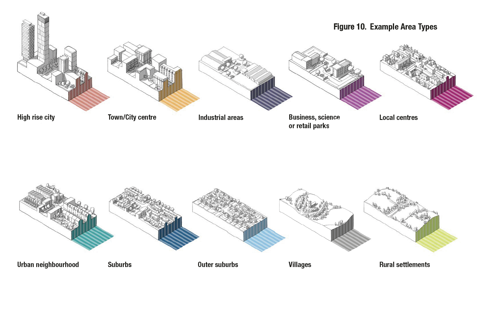 Publishing a draft national design code that provides a checklist of design principles to consider for new developments, such as street character, building type, façade, and the requirements that address wellbeing and environmental impact, which councils can use as a foundation for their own local design codes.