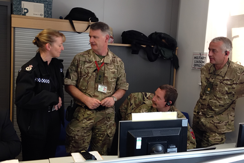 Lieutenant Colonel Graham Whitmore (second from left) with his team colleagues at 'Tour de France Gold Command' in Wakefield Police headquarters [Picture: Crown copyright]