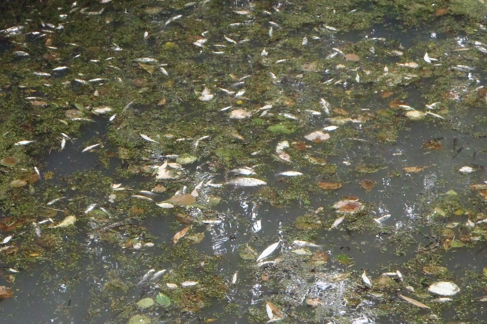 Dead fish floating on the surface of Spring Dyke