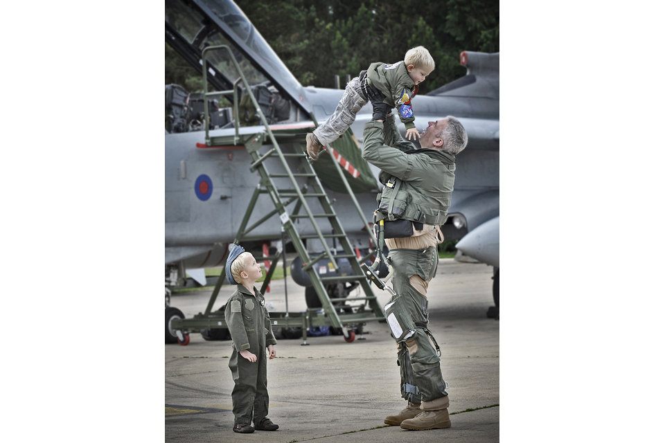 An airman lifts one of his children on his return from operations overseas (library image) [Picture: Senior Aircraftman Chris Hill, Crown copyright]