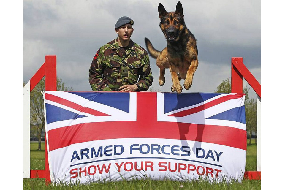 Air dog Borik and his Royal Air Force Police handler showing their support for Armed Forces Day in 2012 (library image) [Picture: Senior Aircraftman Chris Davidson, Crown copyright]