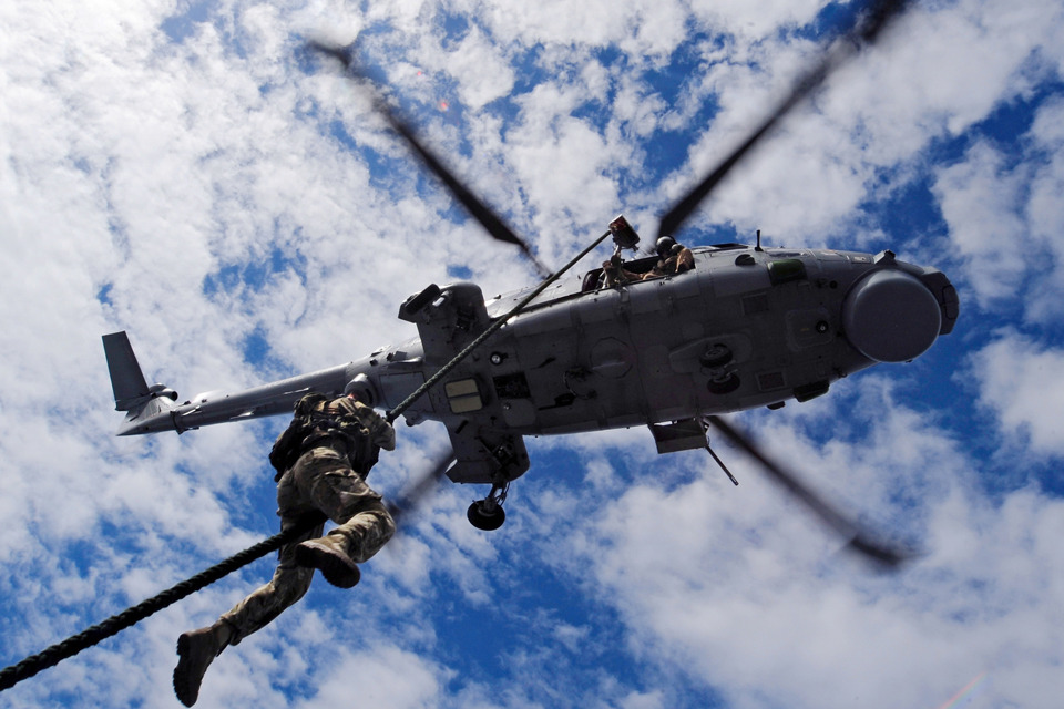 Rapid roping from a Royal Navy Lynx helicopter (llibrary image) [Picture: Leading Airman (Photographer) Stuart Hill, Crown copyright]
