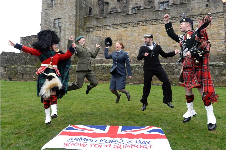 Service personnel celebrate the launch of Armed Forces Day 2014 at Stirling Castle [Picture: Mark Owens, Crown copyright]