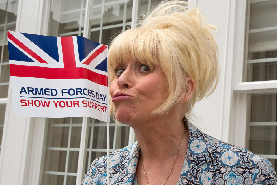 Actress Barbara Windsor with an Armed Forces Day flag [Picture: Harland Quarrington, Crown copyright]