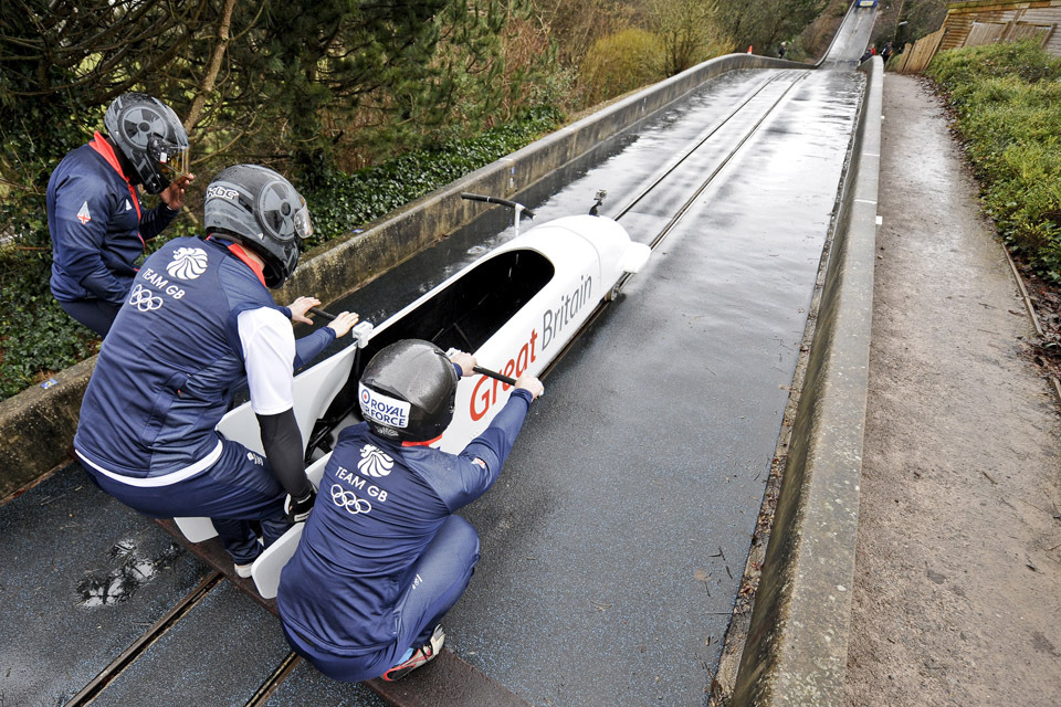 The Team GB 4-man bobsleigh squad training at Bath University before leaving for Sochi [Picture: Senior Aircraftman Daniel Herrick, Crown copyright]