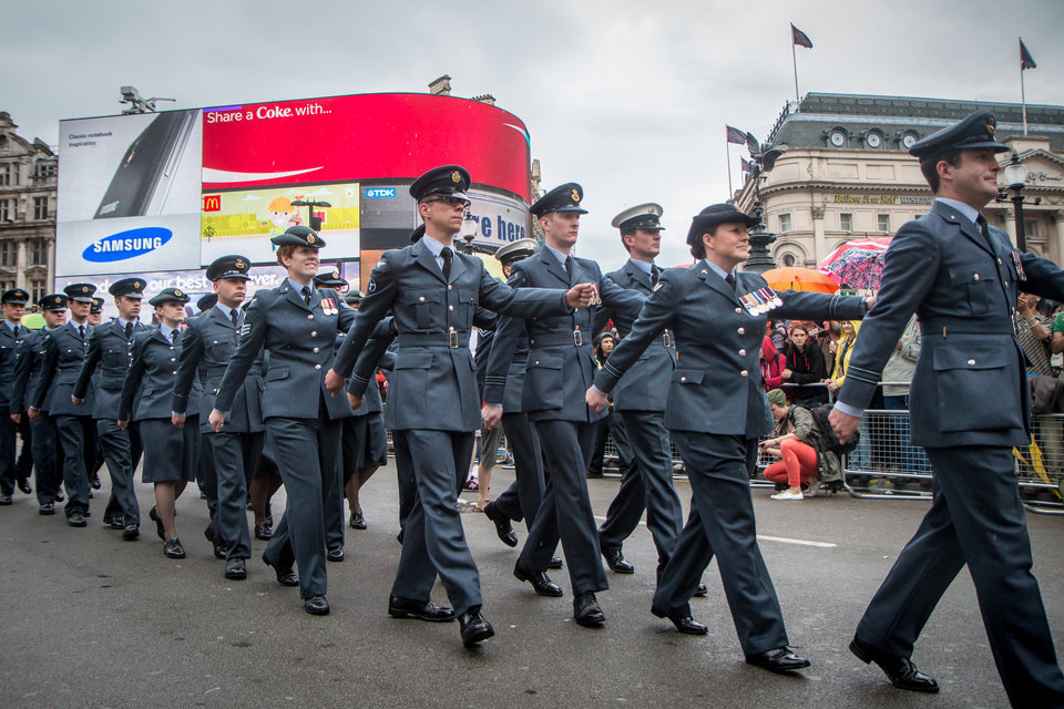 Royal Air Force personnel marching through Piccadilly Circus in London [Picture: Nicolas Chinardet]