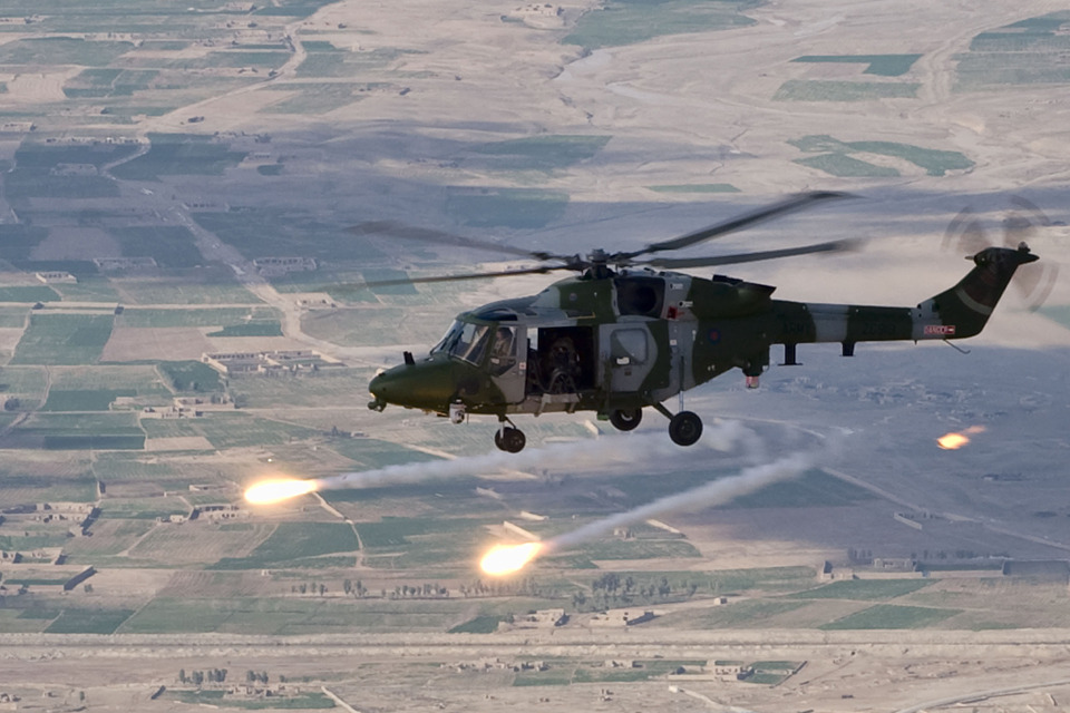 A Lynx helicopter releasing flares over Helmand province in Afghanistan [Picture: Corporal Jamie Peters RLC, Crown copyright]