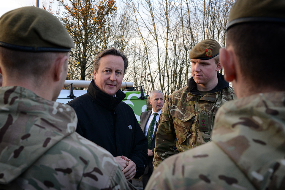 The Prime Minister David Cameron with elements of 5 and 6 Platoon, Blenheim Company, 2nd Battalion The Duke of Lancasters Regiment. Crown Copyright.