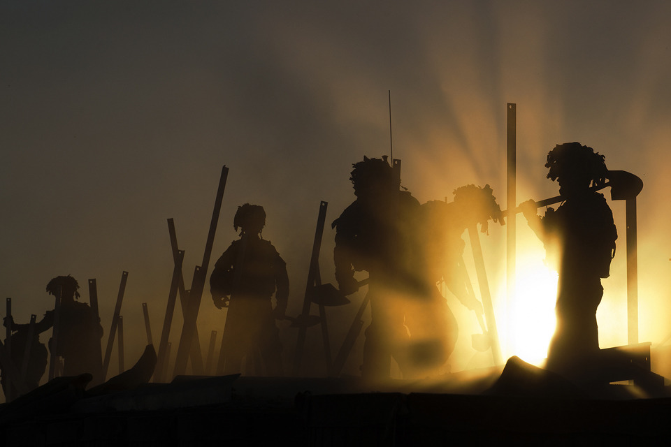 Best Professional Operational Image: 'Sunset Soldiers' – as the sun sets, sappers from 21 Engineer Regiment work to deconstruct a building [Picture: Corporal Jamie Peters RLC, Crown copyright]