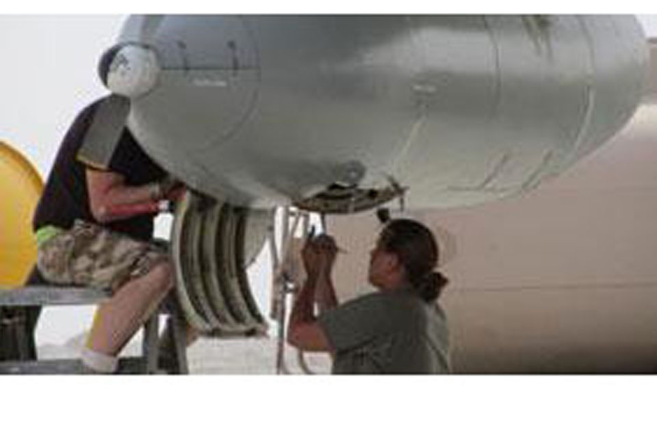 Corporal Buzz Jordan and Senior Aircraftwoman (Technician) Sarah Meek at work [Picture: Crown Copyright/MOD 2011]