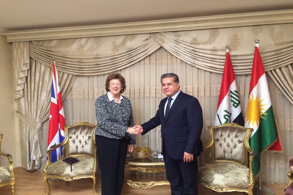 The Baroness with HE Falah Mustafa, Foreign Minister for Kurdistan, discussing what can be done to provide safety and security for women in KRG.