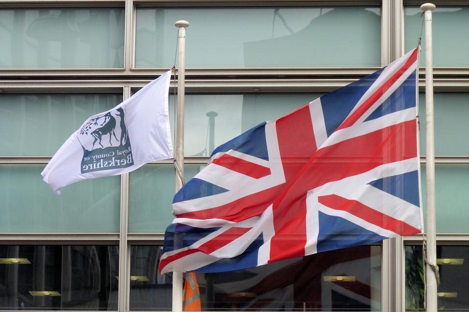The Royal County of Berkshire flag flying alongside the Union Flag outside Eland House.