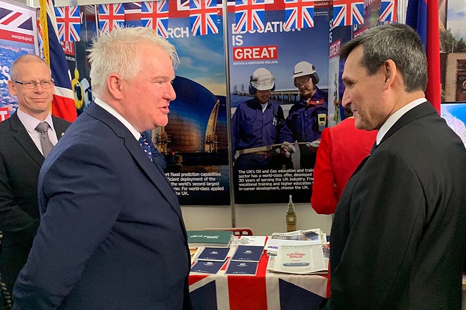 The Deputy Chairman of the Cabinet of Minister and Minister of Foreign Affairs, H.E. Mr Meredov also called on the Embassy’s stand where he met the Ambassador H.E. Mr Hugh Philpott. The Deputy Head of Mission Mr David Pert, who was on the stand, commented that it was a great opportunity to chat to young Turkmen diplomats and students.