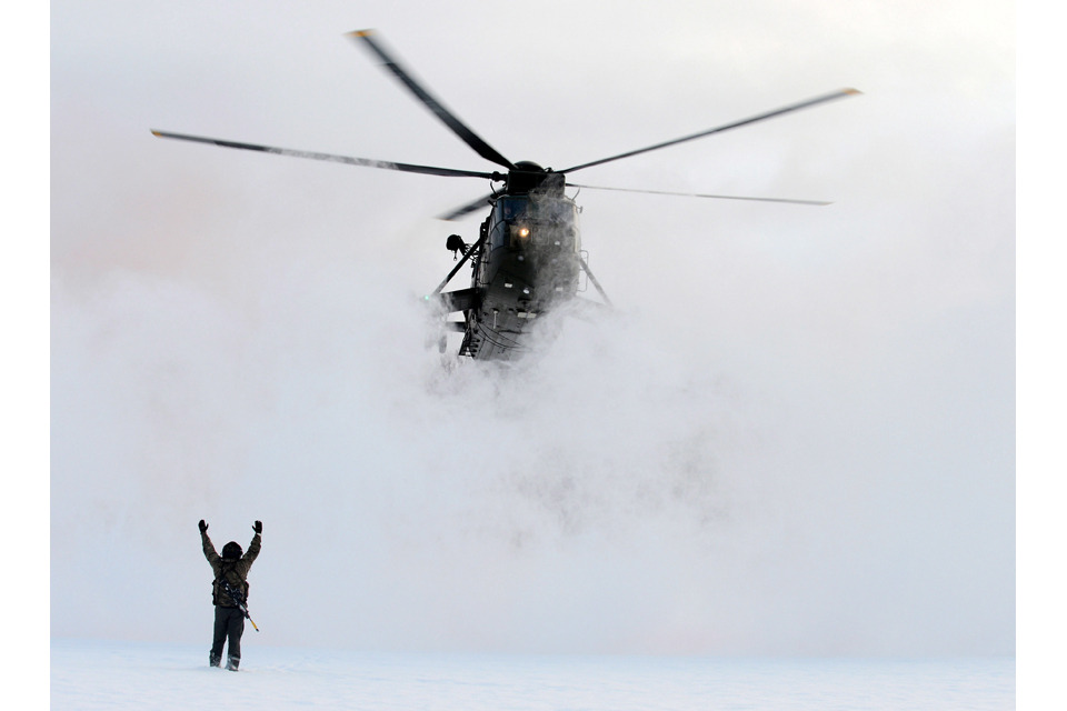 Maritime Air Prize: an 845 Naval Air Squadron Sea King Mk4 helicopter landing at a forward operating base during an exercise in Norway [Picture: Petty Officer Mez Merrill, Crown copyright]