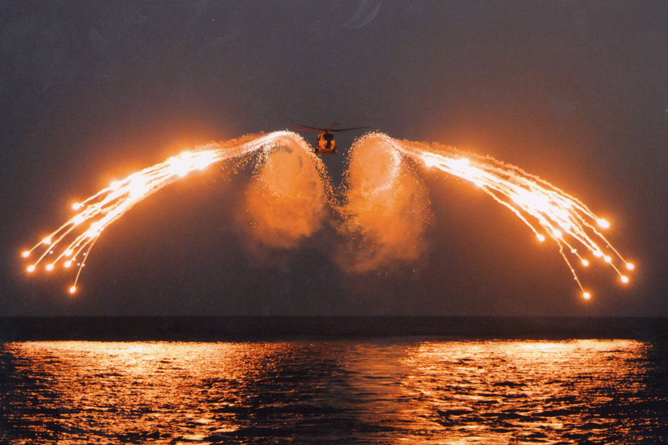 Royal Navy Amateur Maritime Image Award: a Merlin helicopter test-firing decoy flares [Picture: Petty Officer Michael Weir, Crown copyright]