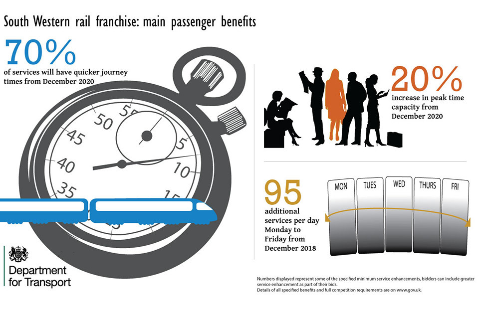 The Department for Transport (DfT) has published documents setting out how bidders for the new South Western franchise will be required to provide plans for: