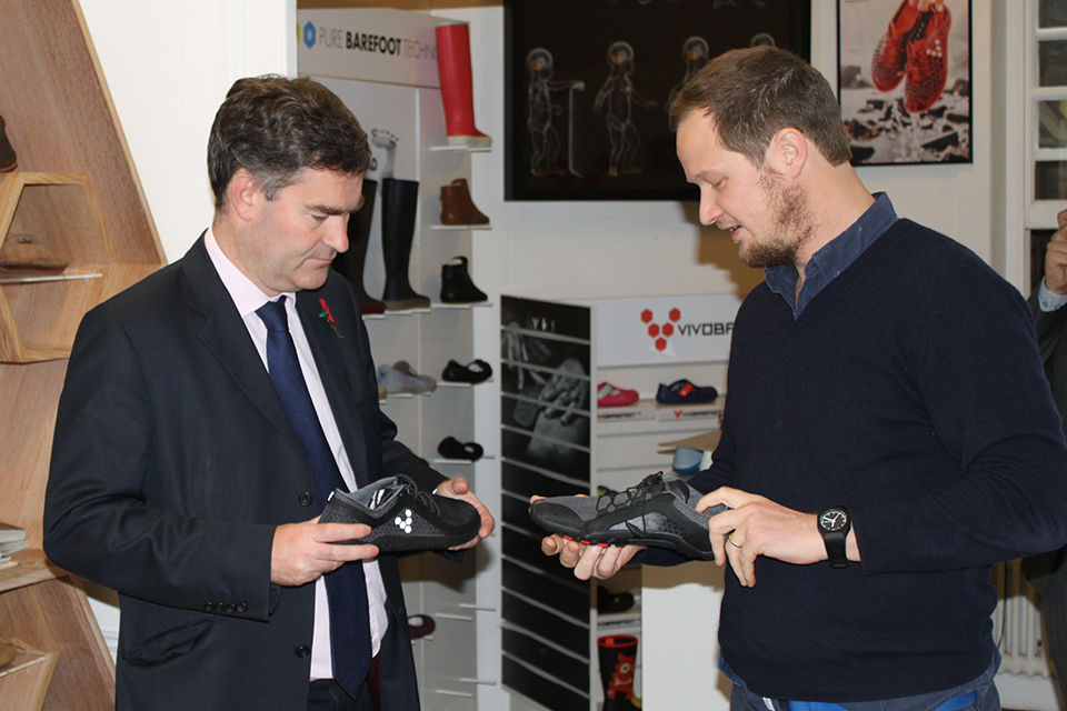 Financial Secretary visits a small business Vivobarefoot to launch new research and development plan