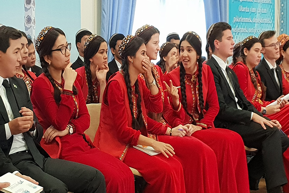 The event, which was formally endorsed by the Ministry of Foreign Affairs of Turkmenistan, was held within the framework of the national campaign dedicated to the 70th anniversary of the adoption of the Universal Declaration of Human Rights (UDHR). It was organised to increase human rights knowledge and awareness of the values enshrined in the UDHR among the students and their professors.