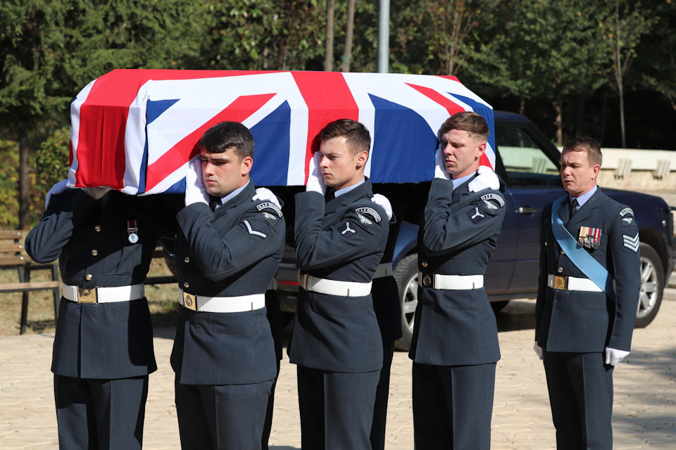Seven crew members of the 148 (special duties) squadron RAF who were onboard the RAF Halifax JP244 aircraft have been laid to rest almost 75 years after they were killed carrying out a supply mission over Albania. A burial service to honour the crewmen was held earlier today (Wednesday 24 October) at the Commonwealth War Graves Commission (CWGC) Tirana Park Memorial Cemetery, Albania and was attended by Her Majesty’s Ambassador, His excellency Mr Duncan Norman MBE, family members and local dignitaries.