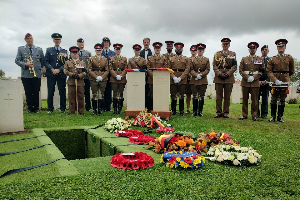 The burial service, organised by the MOD’s Joint Casualty and Compassionate Centre (JCCC), took place at the Commonwealth War Graves Commission’s (CWGC) Poelcapelle British Cemetery in Belgium.