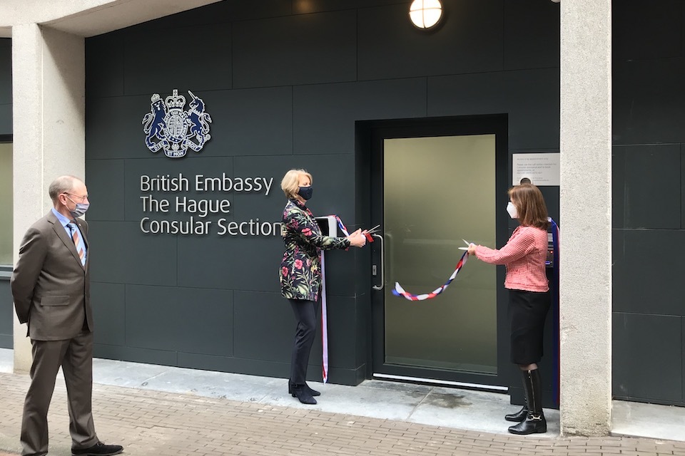 On Monday 19 October Ambassador Joanna Roper CMG, British Consul John Cameron-Webb, and Europe Director of the Dutch Ministry of Foreign Affairs Erica Schouten opened the new Consular Section of the British Embassy in the Hague.