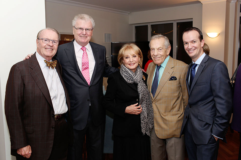 From left to right: Charles Osgood, Sir Howard Stringer, Barbara Walters, Morley Safer, and Consul General Danny Lopez.