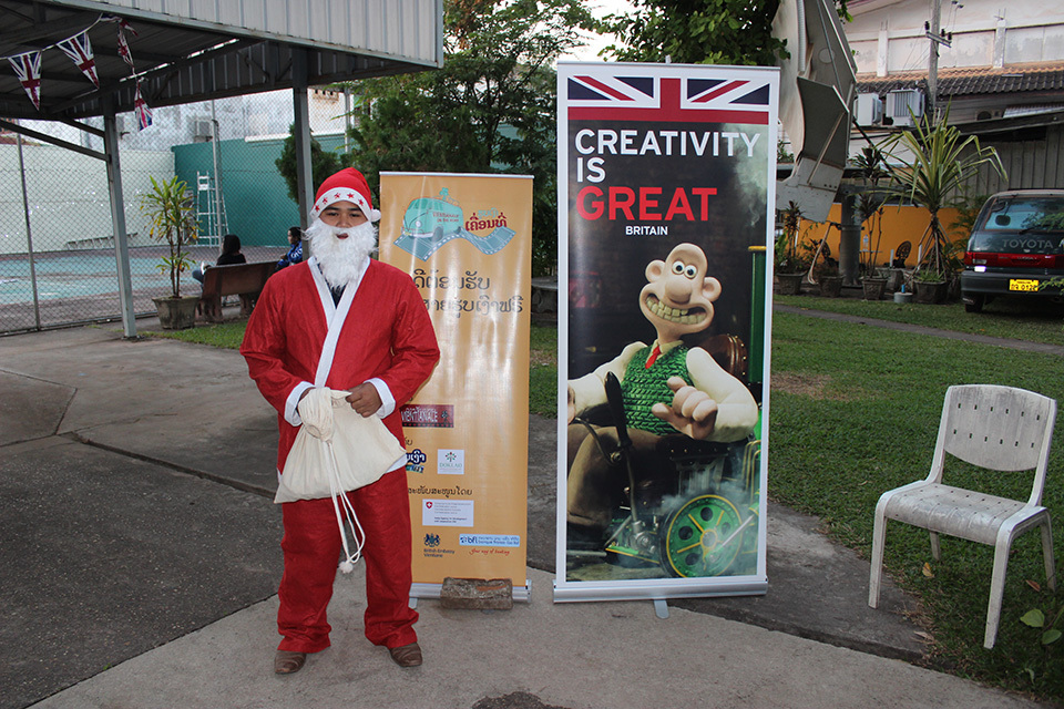 The British Embassy Vientiane unveiled an innovative way of watching movies, suitable for use in remote areas of Laos at a special pre-Christmas event on Thursday evening: a pedal powered cinema unit.