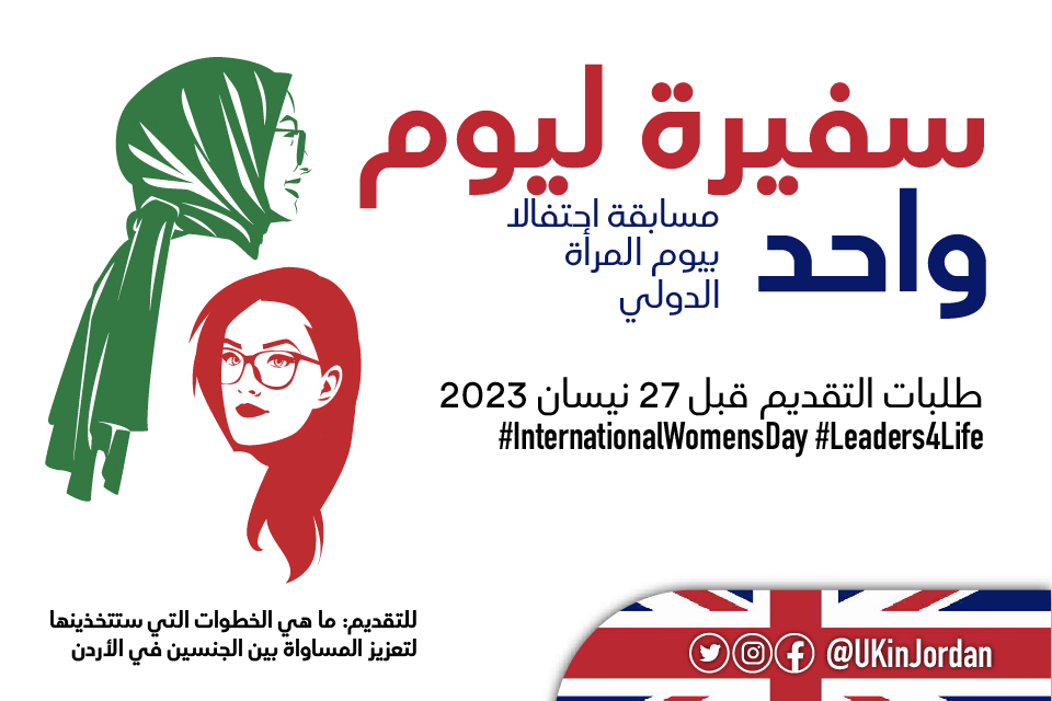 أطلقت السفارة البريطانية في عمان مبادرة جديدة لمنح الشابات في الأردن فرصة لتجربة العمل الدبلوماسي بشكل مباشر والانضمام إلى شبكة من القيادات النسائية لمناصرة المساواة بين الجنسين والإدماج الاجتماعي في الأردن.