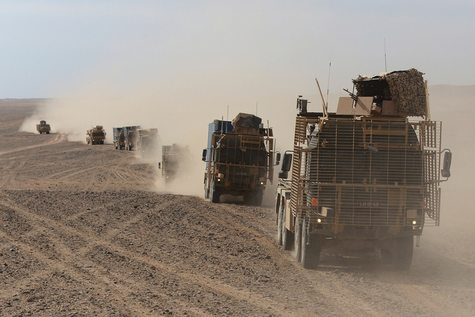 An Immediate Replenishment Group vehicle convoy making its way across the desert [Picture: Leading Airman (Photographer) Rhys O'Leary, Crown Copyright/MOD 2013]