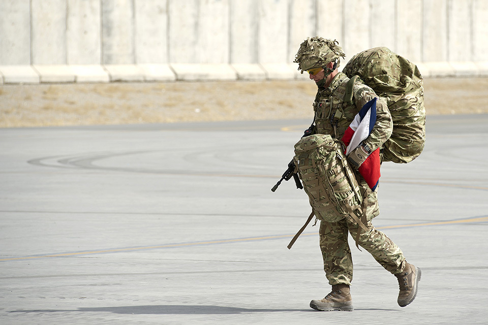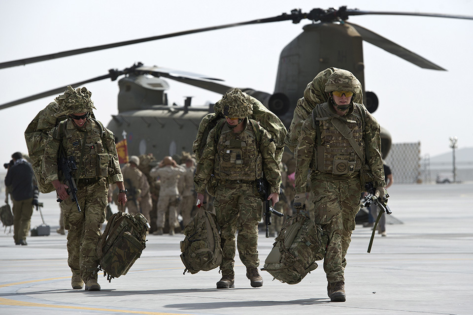 British military personnel at Kandahar Airfield having departed Camp Bastion for the final time [Picture: Corporal Andrew Morris RAF, Crown copyright]